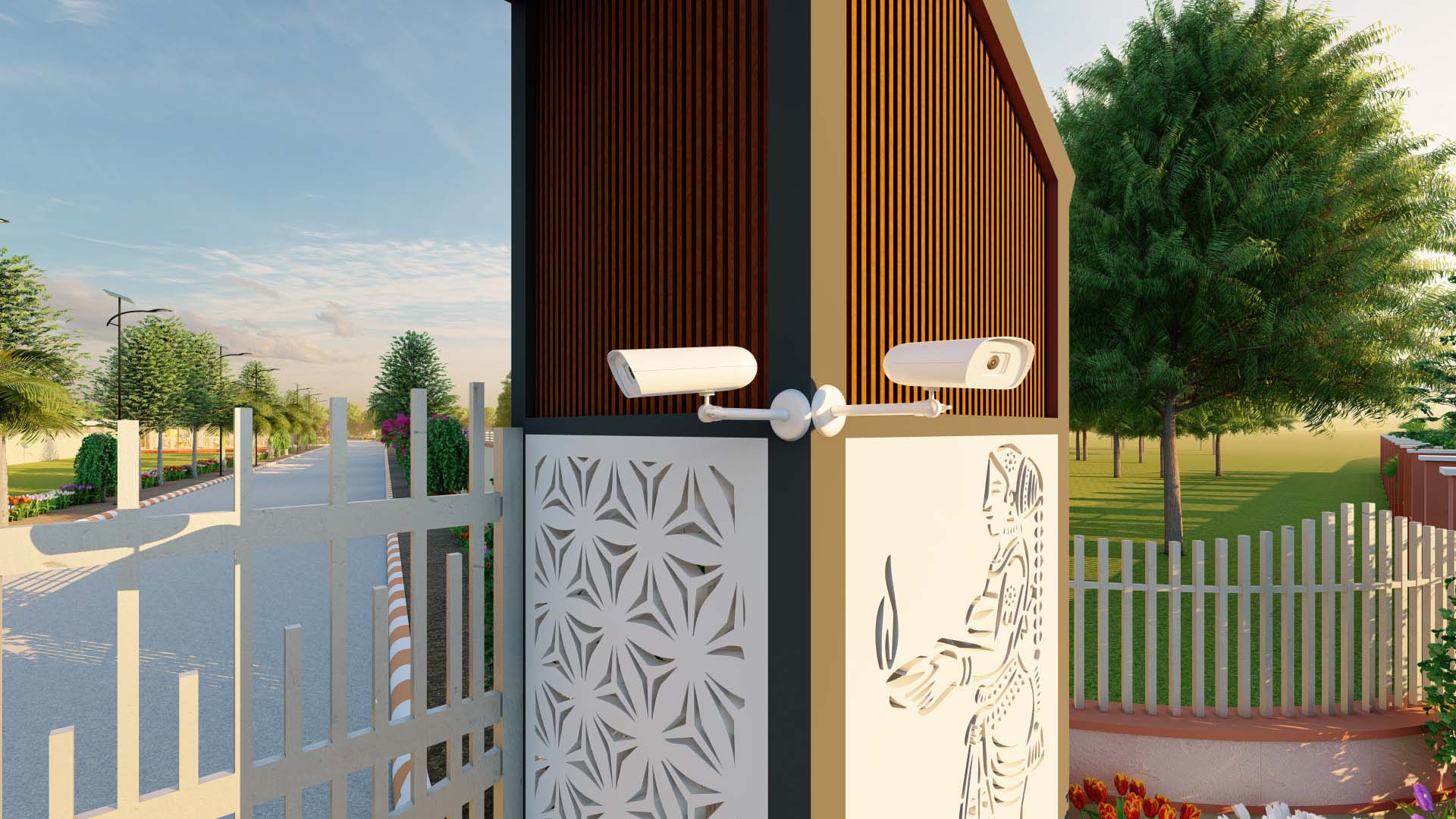 The township features well-planned 9 m and 12 m wide roads, ensuring smooth connectivity within the community and to nearby areas.