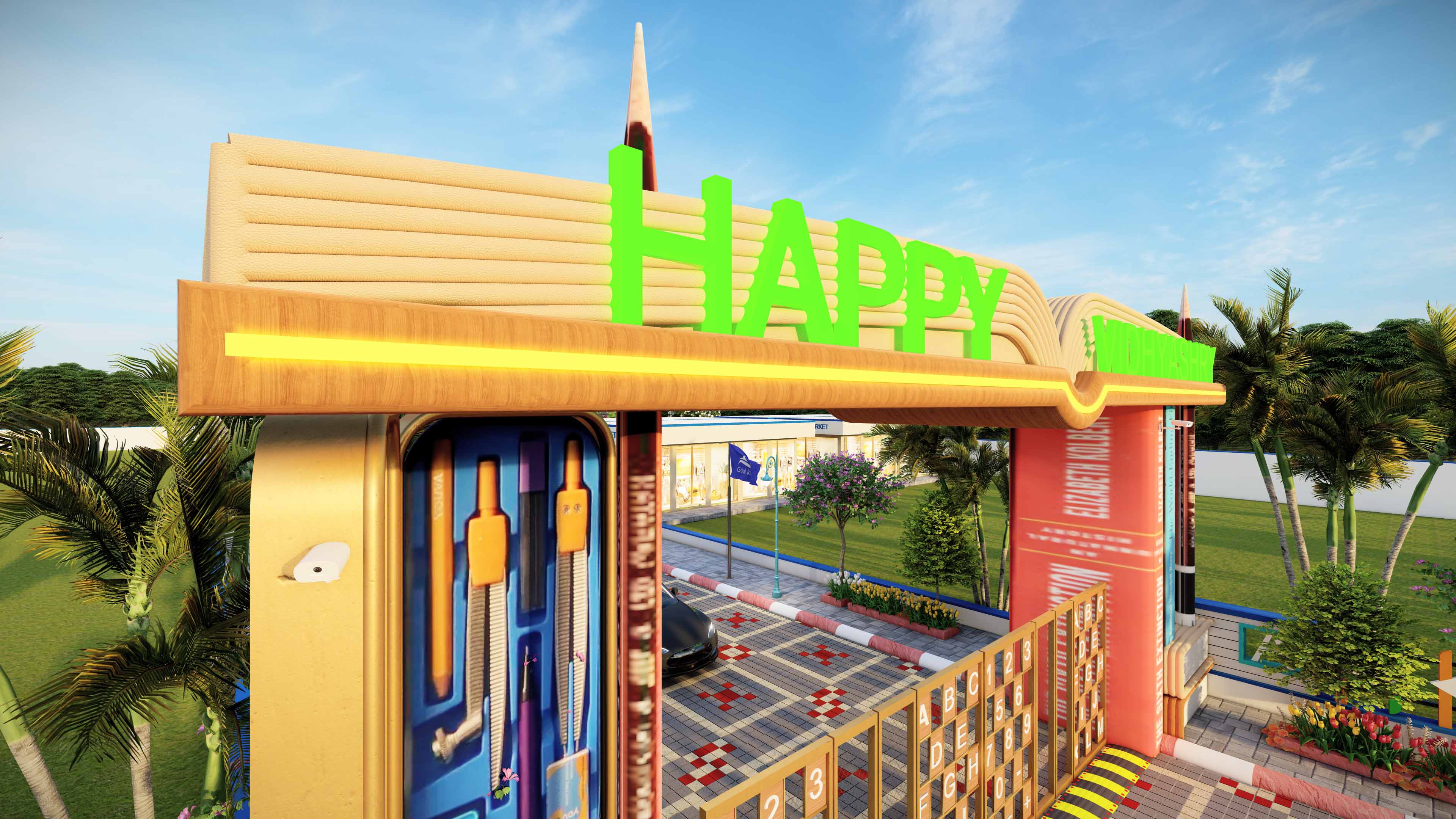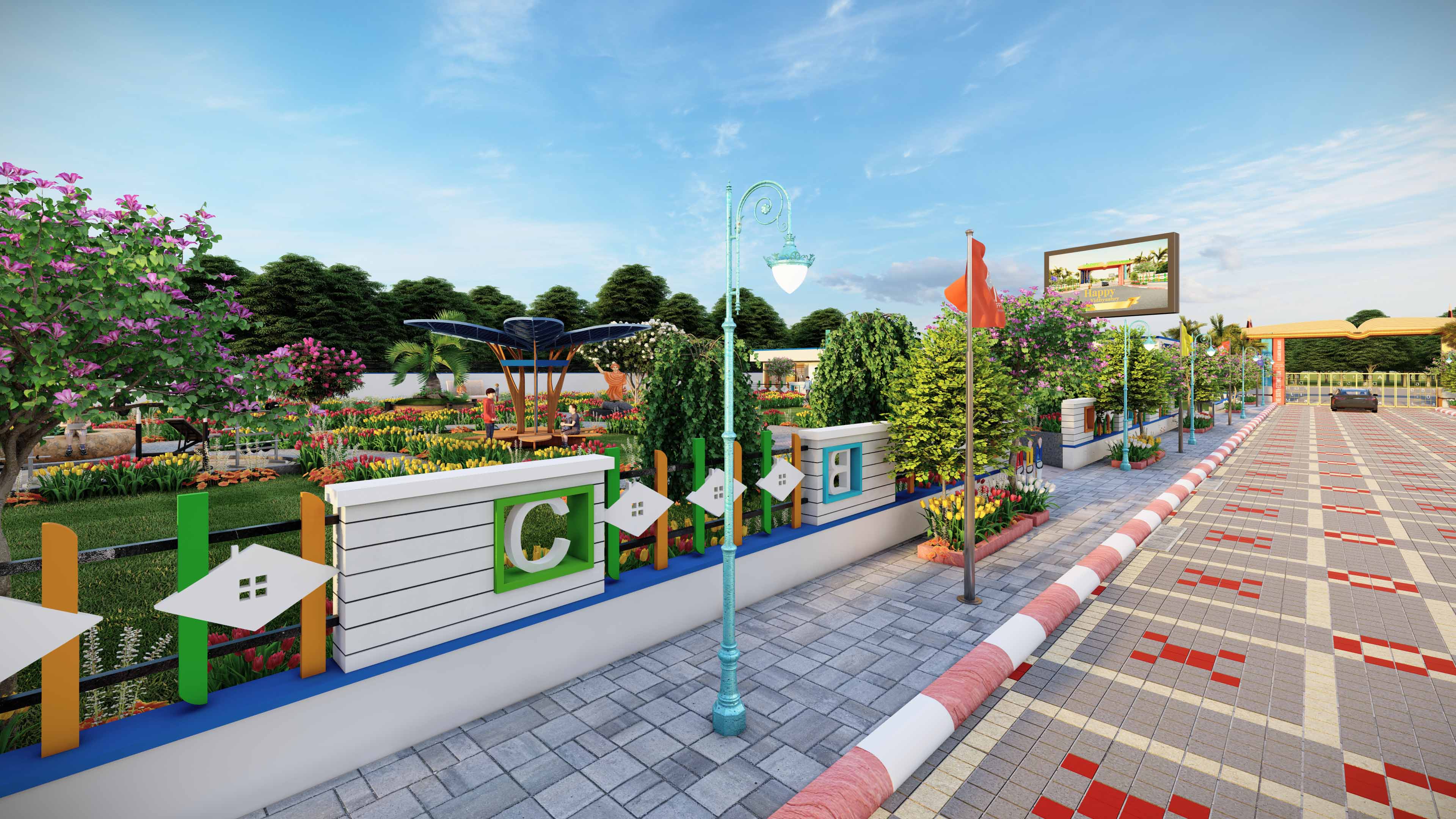 Happy Vidhyashry offers best-in-class infrastructure along with modern amenities, including a beautiful park, solar tree, seating areas, and plantation zones, creating a refreshing and sustainable environment.