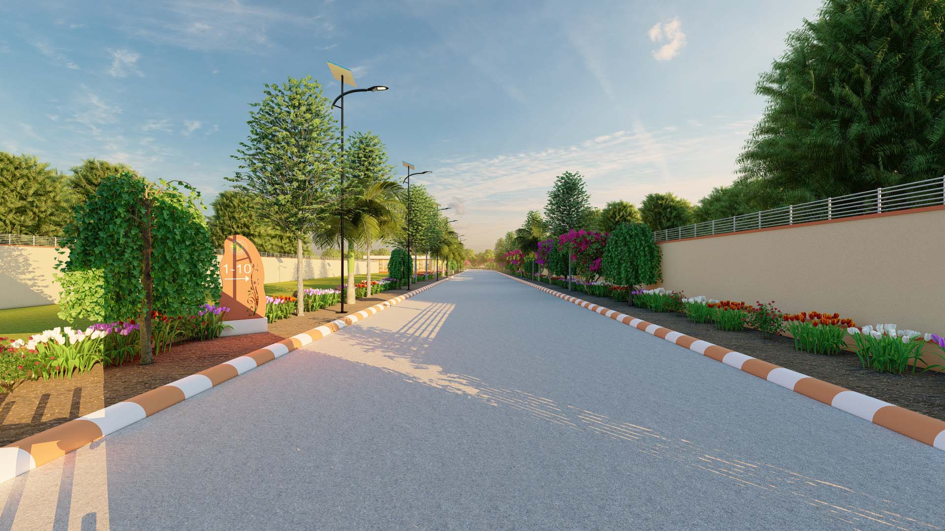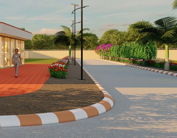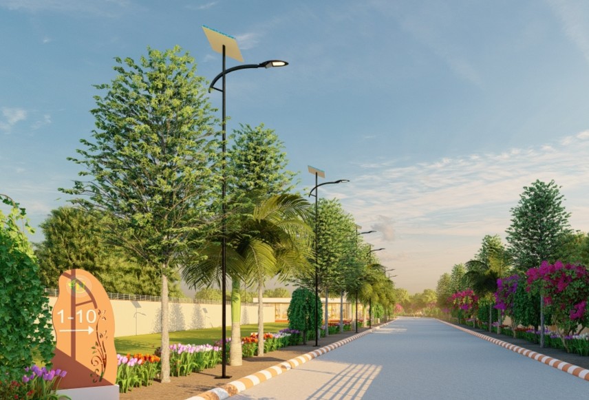 The township features well-planned 9 m and 12 m wide roads, ensuring smooth connectivity within the community and to nearby areas.
