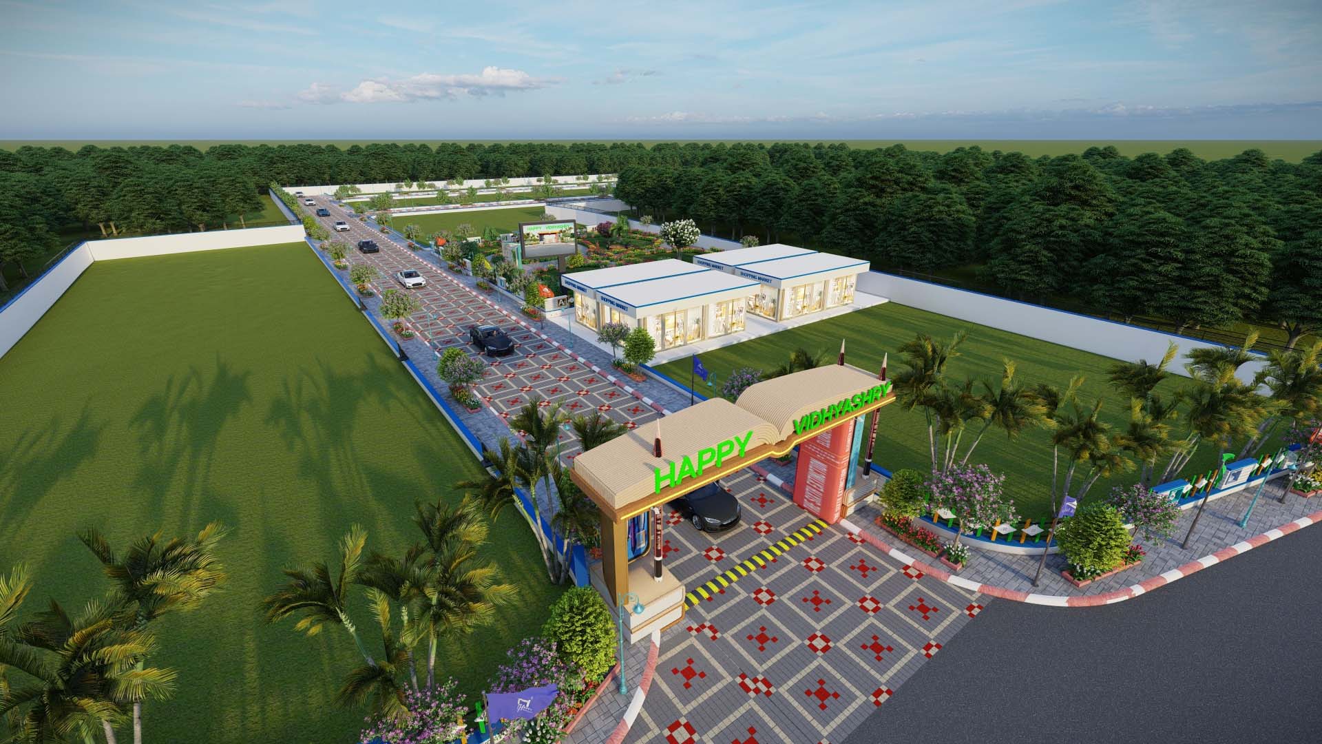 Experience the spirit of Happy Vidhyashry through our captivating 3D walk-through — an education-themed township that seamlessly blends learning, modern living, and nature. Stroll through thoughtfully planned spaces, surrounded by lush greenery and serene landscapes, all designed to inspire a smarter, happier lifestyle.