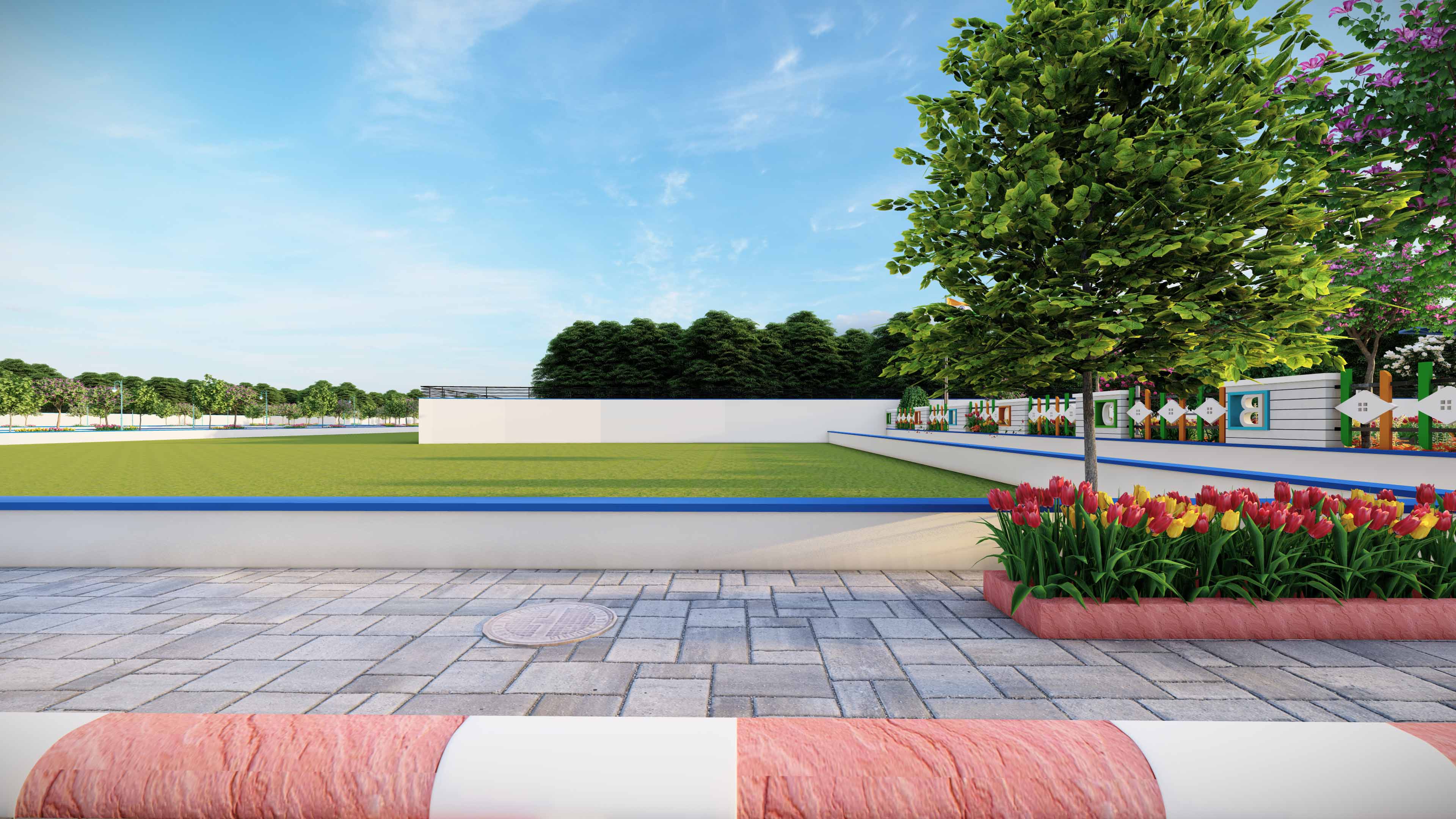 Featuring well-planned 9 m and 12 m wide roads, the township ensures smooth connectivity within the community and to nearby areas.