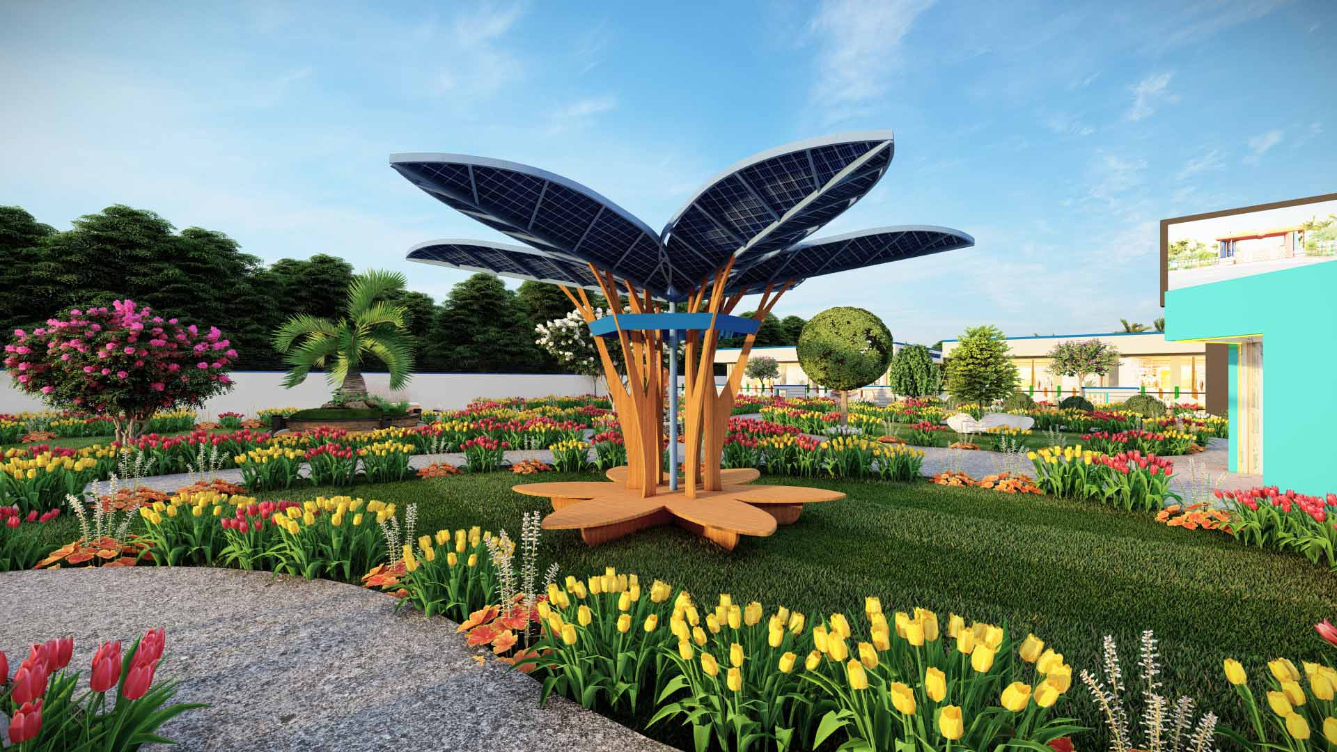 Happy Vidhyashry offers best-in-class infrastructure along with modern amenities, including a beautiful park, solar tree, seating areas, and plantation zones, creating a refreshing and sustainable environment.