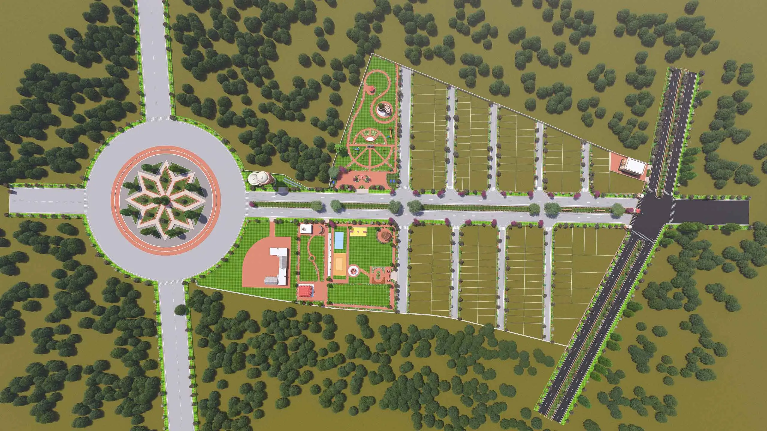 The township is designed with wide internal roads of 9 m, 12 m, and 30 m, ensuring smooth internal movement and excellent connectivity to surrounding areas.